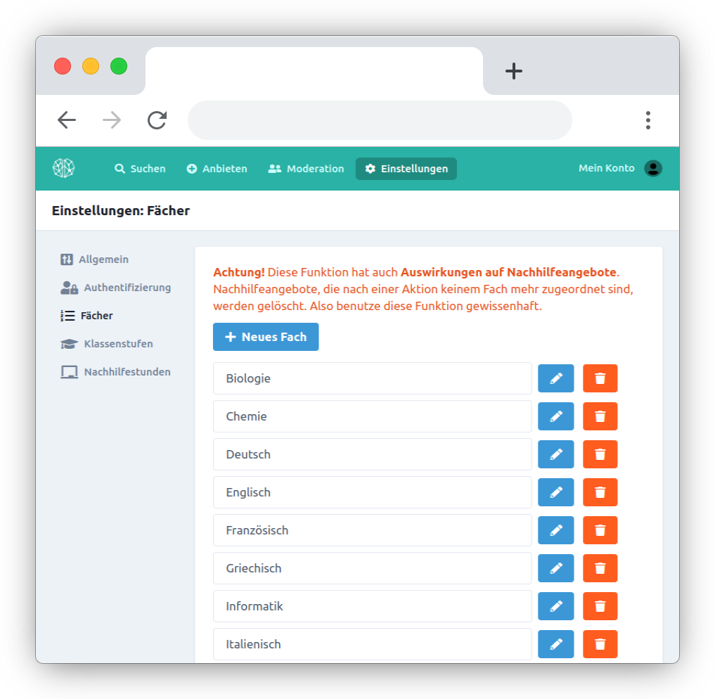 Sie können diese Kombination, in welcher Klasse das jeweilige Fach unterrichtet wird einfach im Admin-Bereich des Portals einstellen.